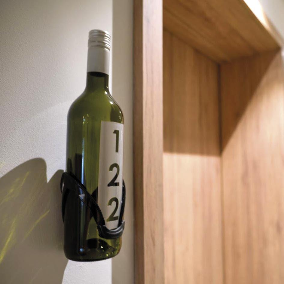 Bei der Inneneinrichtung findet sich das Thema Wein wieder. Warme Farben und natürliche Materialien nehmen Bezug auf die fruchtbaren Anbaugebiete der Umgebung. Philosophisch angehauchte Weisheiten und großformatige Kunstwerke lassen die Gäste in die Welt des Genusses eintauchen. Die Bäder sind bei Bedarf durch eine verschiebbare, künstlerisch gestaltete Glaswand abtrennbar. Sie ist undurchsichtig aber Licht durchlässig, so dass auch im geschlossenen Zustand das Bad Tageslicht bekommt.