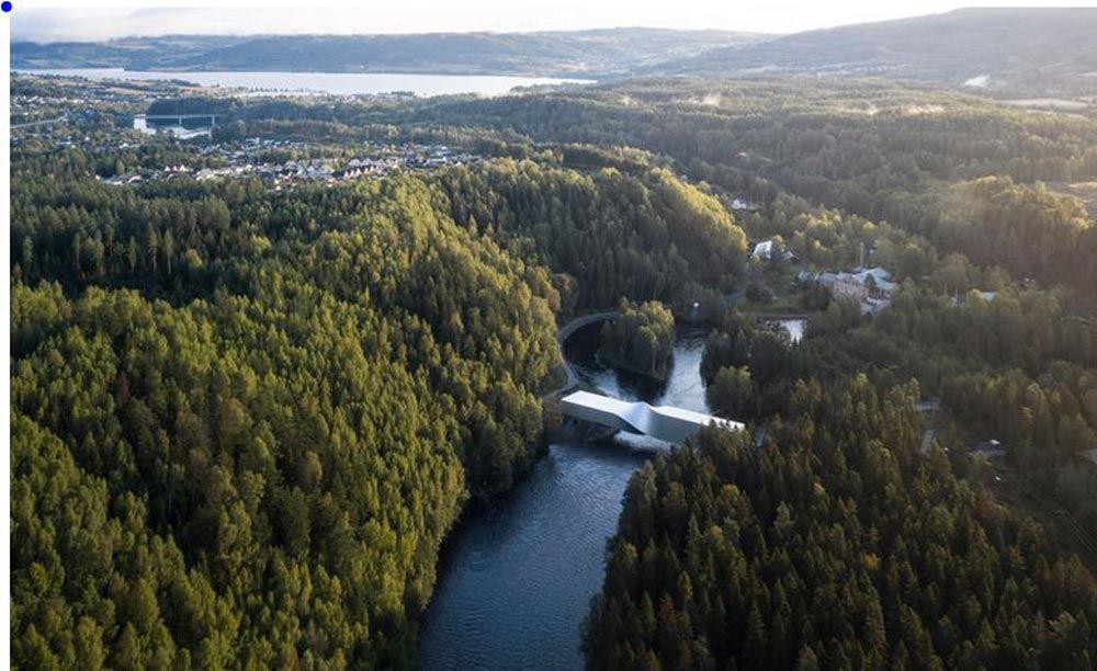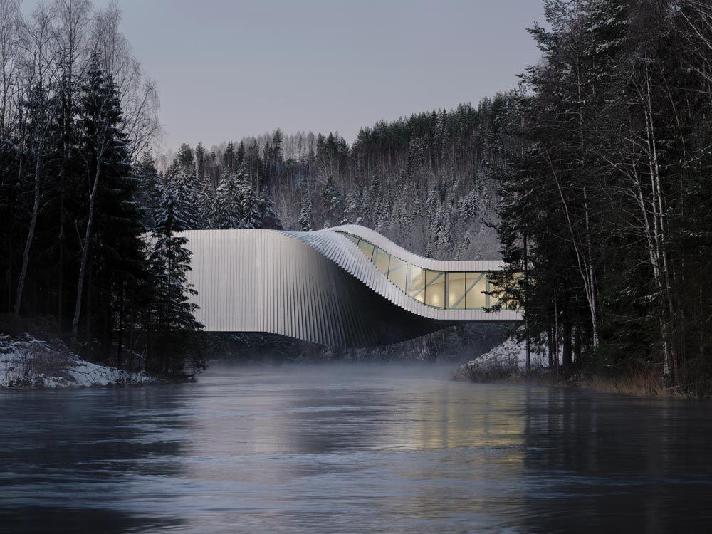 Diese Brücke schlägt seit dem Herbst 2019 das Museumsgebäude „The Twist“, eher weniger eine Brücke, als vielmehr eine monumentale Skulptur, realisiert von dem dänischen Architekturbüro BIG (Bjarke Ingels Group), die über 25 Meter beide Ufer verbindet. Vom Hausherrn gewünscht war ein prestigeträchtiger Neubau, was für die Architekten von BIG eine leichte Übung war, die sich weltweit mit spektakulären Bauten einen Namen gemacht haben. Für die Architekten ist eine dem Umfeld angepasste Architektur kein Thema, Kontraste seien das Wichtigste, so formulierte es einmal BIG-Architekt David Zahle auf Fragen von Journalisten. Im Fall von „The Twist“ ging es den Architekten in erster Linie darum, das neue Museum als eigenes Kunstobjekt in den Skulpturenpark ein zu binden.