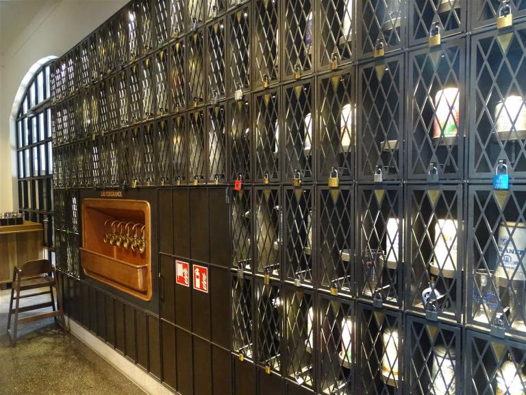 So kommen am Nockherberg gleich mehrere Traditionen zusammen: Das in München heilige Brauereihandwerk, die Bierfesttradition und das klassische Wirtshaus. Ein besonderes Detail, das nicht mehr viele Wirtshäuser haben: ein urbayerischer Krug-Tresor mit Stahlgittern, in dem Stammgäste ihre persönlichen Bierkrüge aufbewahren können. Hier sind es übrigens nicht wie üblich Glaskrüge, sondern Keferloher Maßkrügen aus Ton. Entsprechend dazu gibt es einen sogenannten „Grant“ (bairisch für „Trog“) mit Wasserzulauf, in dem die Gäste ihre Privatkrüge vor dem Zapfen beim Schankkellner mit klarem Wasser ausspülen können.